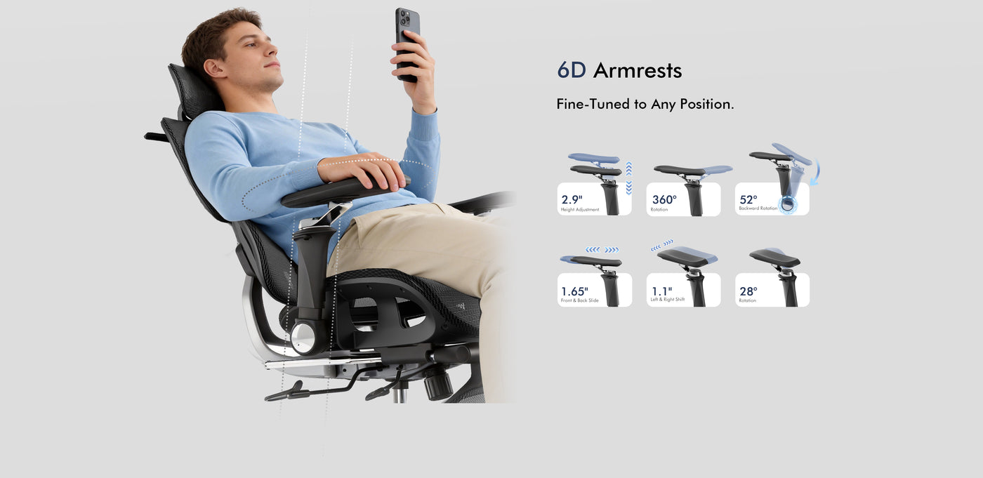 · 360-degree stepless 6D Armrests